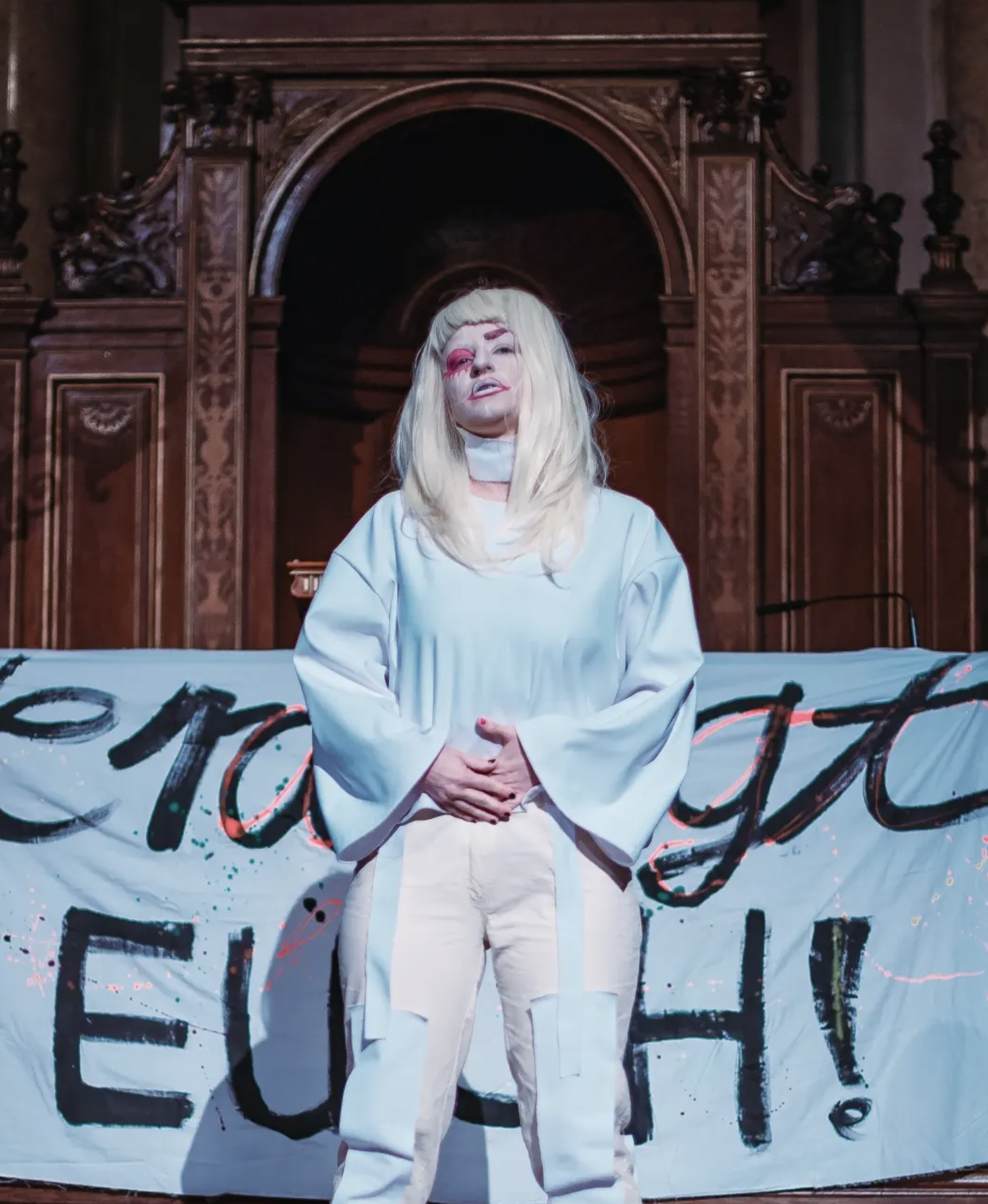 I got the super talented and amazing actress Lena Ruziczka on board to read the text out loud and my good friend and videographer Robert Puteanu to film the whole thing. I edited the video and during my performance I supported the message by bleeding live, in front of the audience.